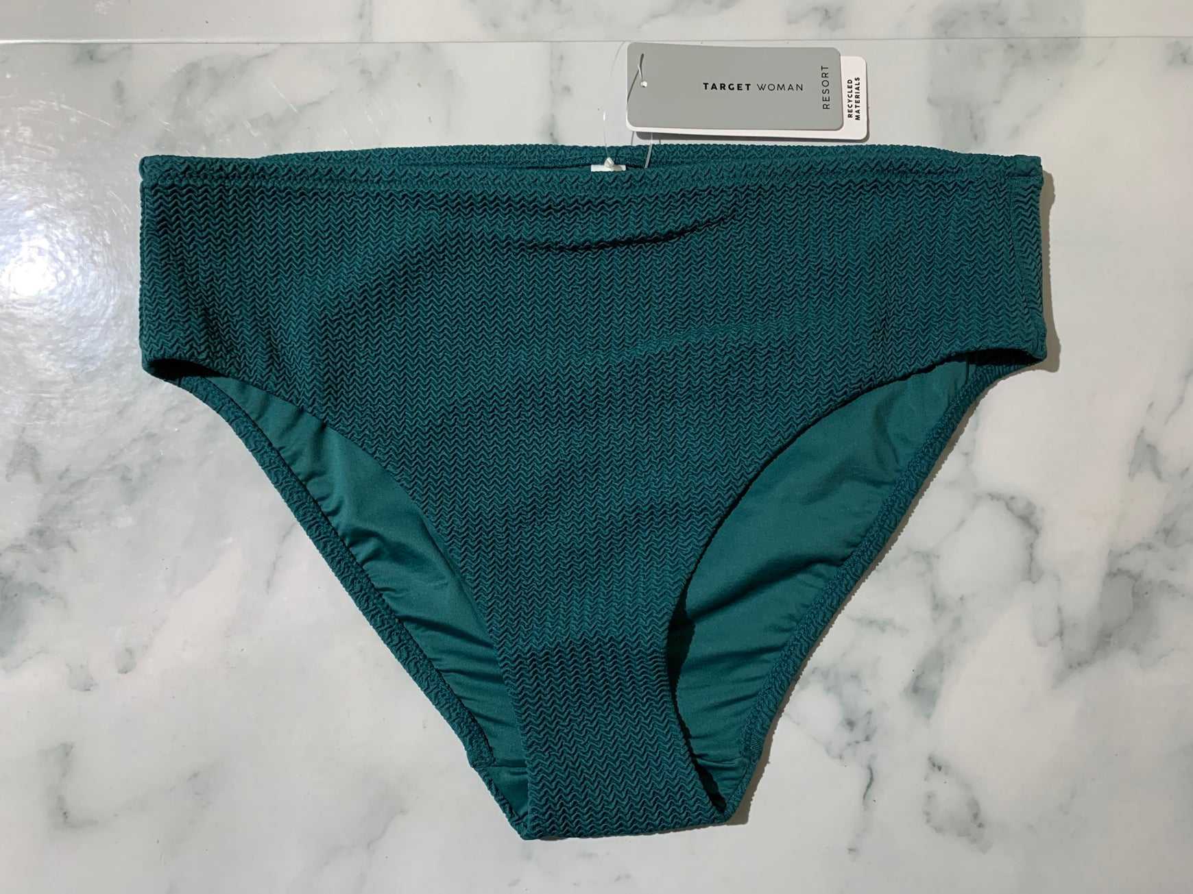 Women's Green Textured Midi Bikini Swim Bottoms