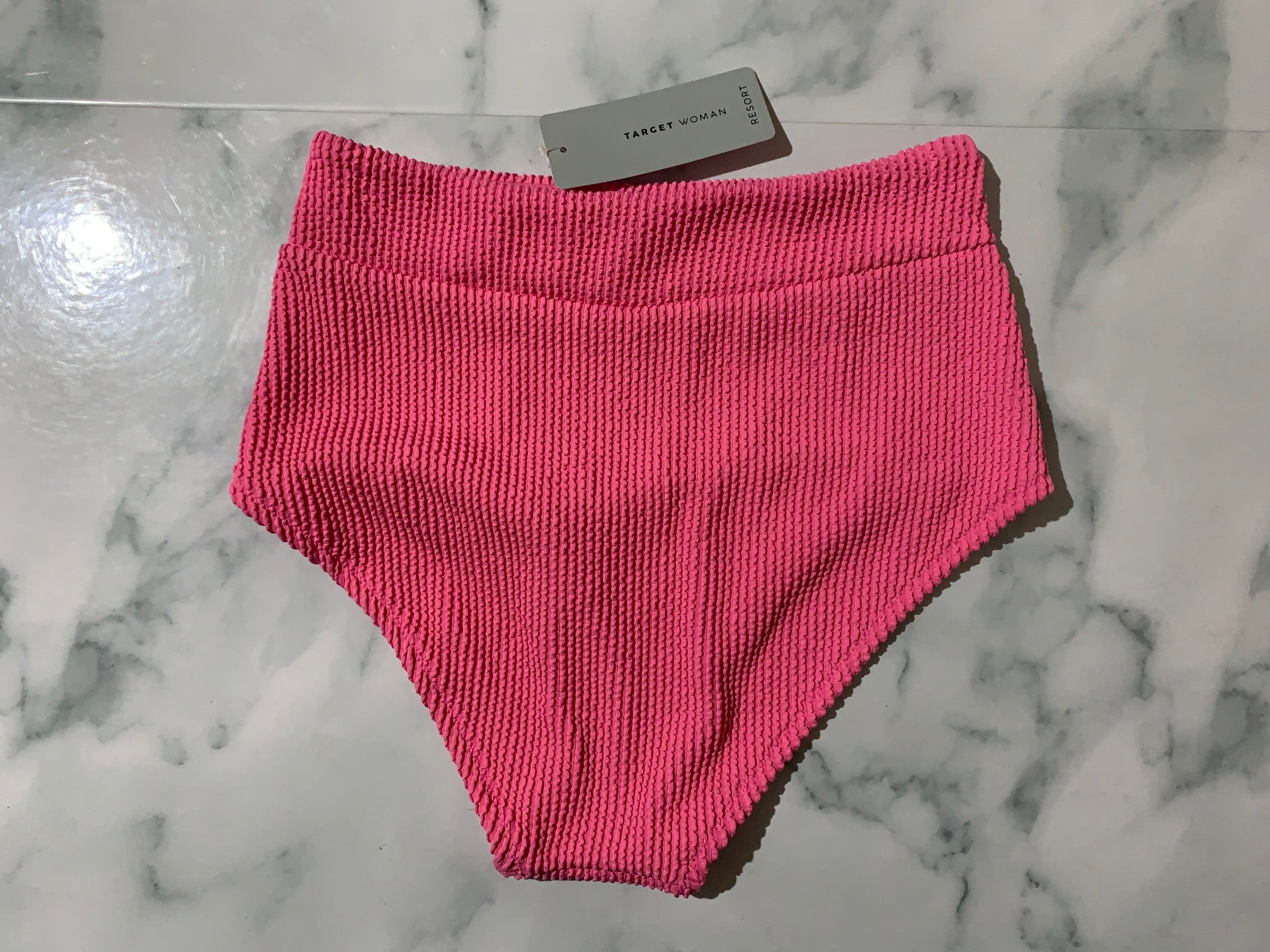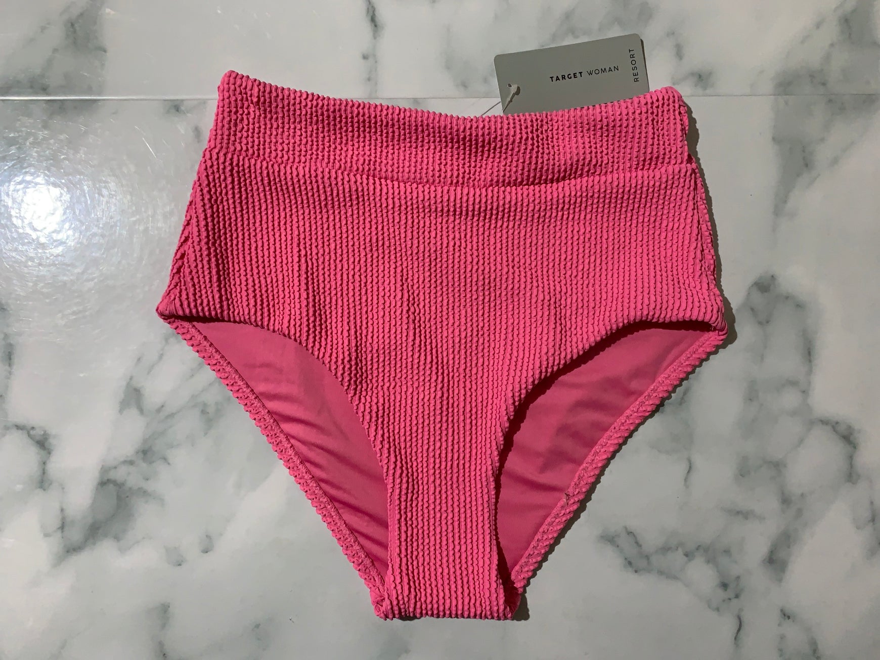 Women's Pink Crinkle Midi Bikini Swim Bottoms (High Rise)
