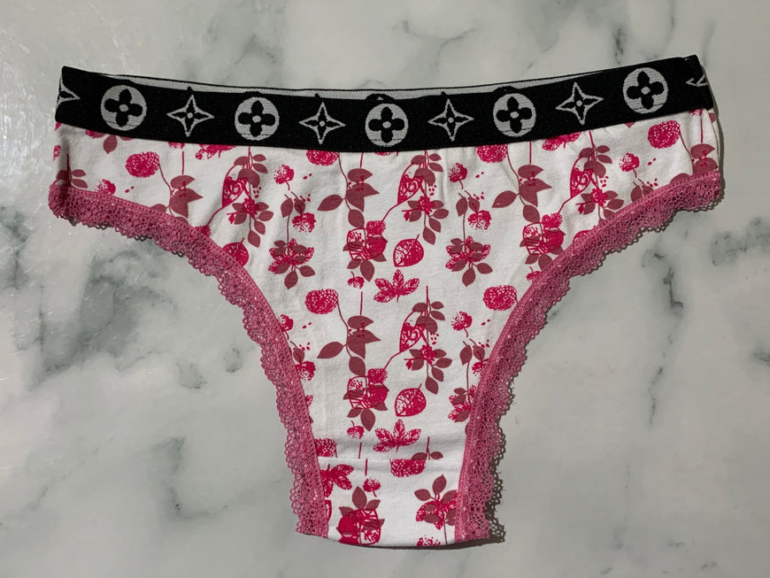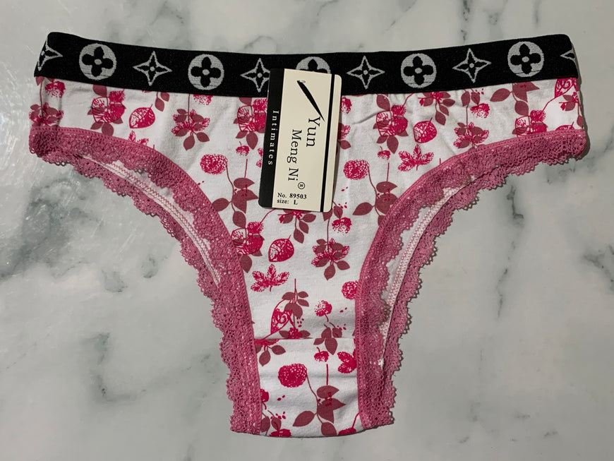 Women's Floral Print Pink Trim Bikini Panties Underwear Low Rise